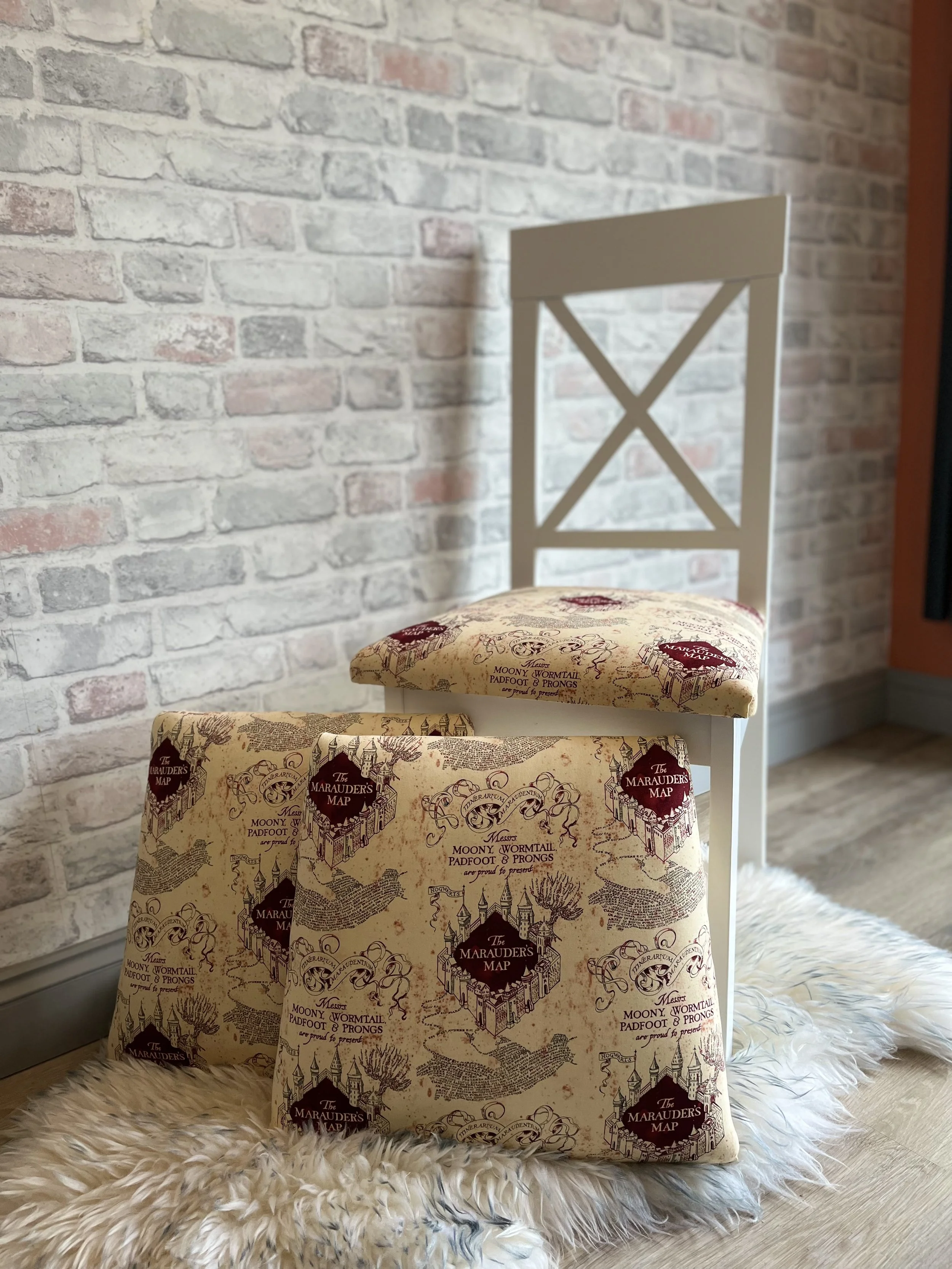 The client had planned a Harry Potter themed kitchen, so here at Web & Down we sourced a Harry Potter themed cotton to build these fabulous dinning chairs with.