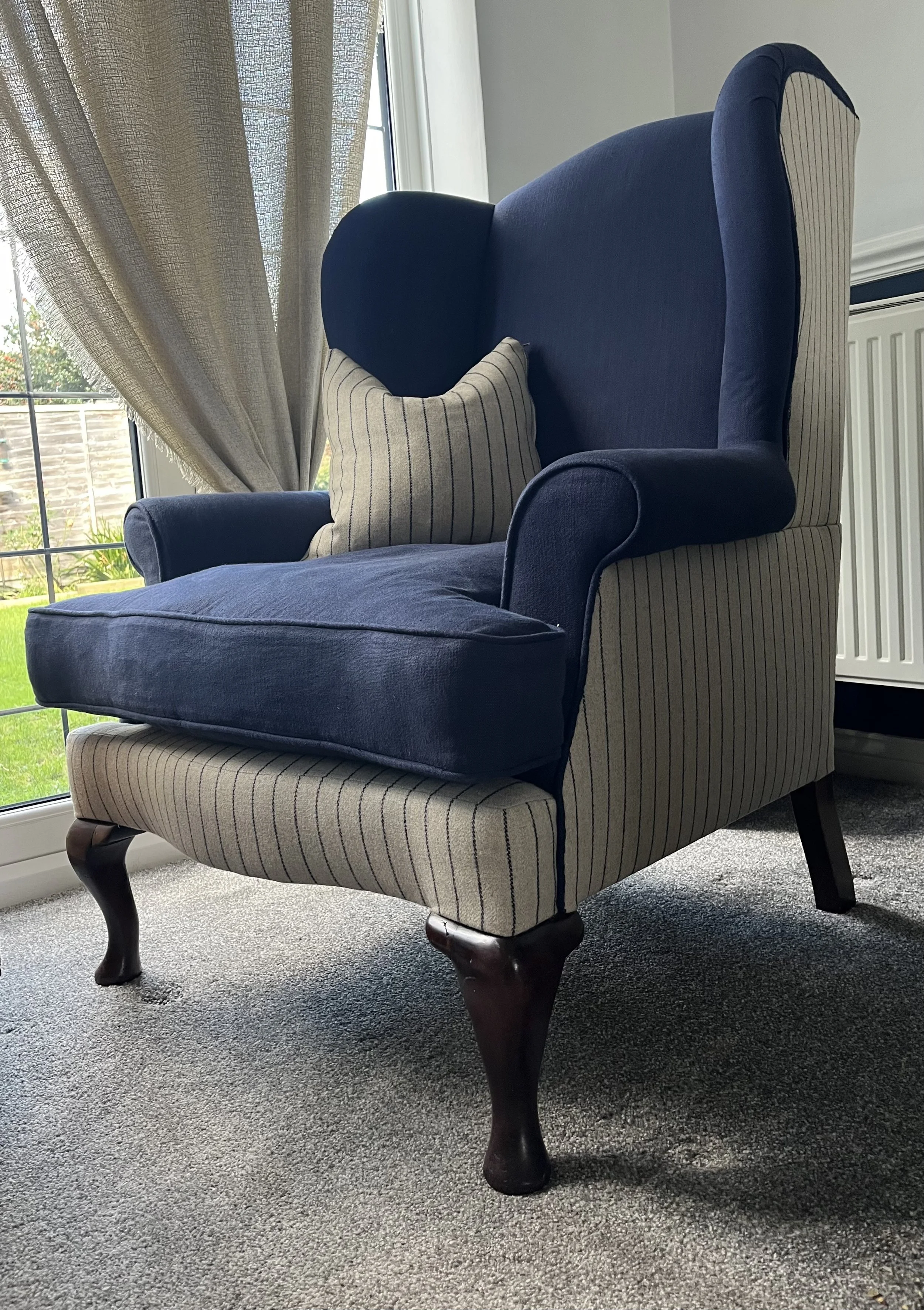 This striking wingback chair, has been lovingly restored by Web & Down.